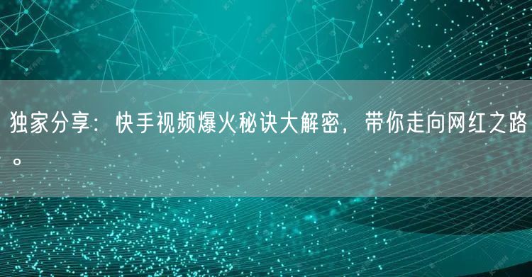 通过本文的分享,相信你已经掌握了快手视频爆火的秘诀。在创作过程中,不断尝试、学习、总结,不断优化自己的内容和技巧,相信你也能走向网红之路。