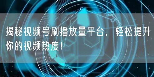 在当今短视频风靡的时代,如何提升视频的热度成为了众多内容创作者关注的焦点。有些视频号通过刷播放量的方式迅速崭露头角。本文将揭秘视频号刷播放量的平台,助你轻松提升视频热度!