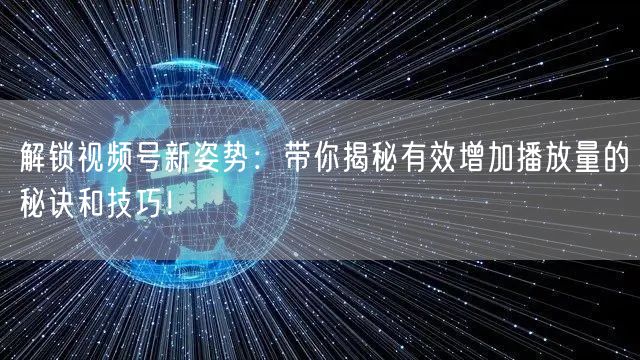 通过以上秘诀和技巧的学习和实践,你将能够更有效地增加视频号的播放量,提升视频内容的影响力。希望本文能对广大视频创作者和营销人员有所帮助,让我们一起努力,创作出更优质、更有吸引力的视频内容!