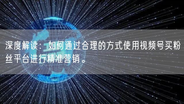 随着移动互联网的迅猛发展,视频号作为新兴的社交媒体平台,受到了广大用户和商家的关注。如何通过合理的方式使用视频号买粉丝平台进行精准营销,成为了许多企业和个人关注的焦点问题。