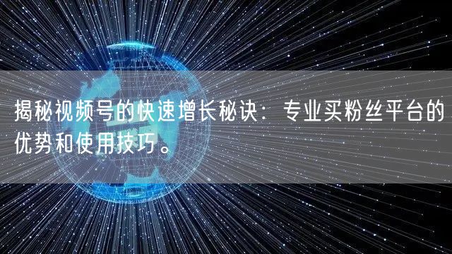 关键词:视频号增长、买粉丝平台、优势、使用技巧、快速增长秘诀。