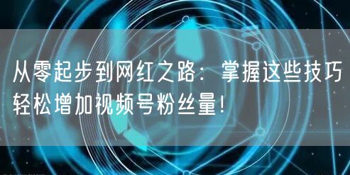 你是否也想从零起步,踏上网红之路?如果你正在运营一个视频号,那么增加粉丝量是关键。本文将为你分享一些实用的技巧,帮助你轻松增加视频号粉丝量,让你的视频在竞争激烈的市场中脱颖而出。