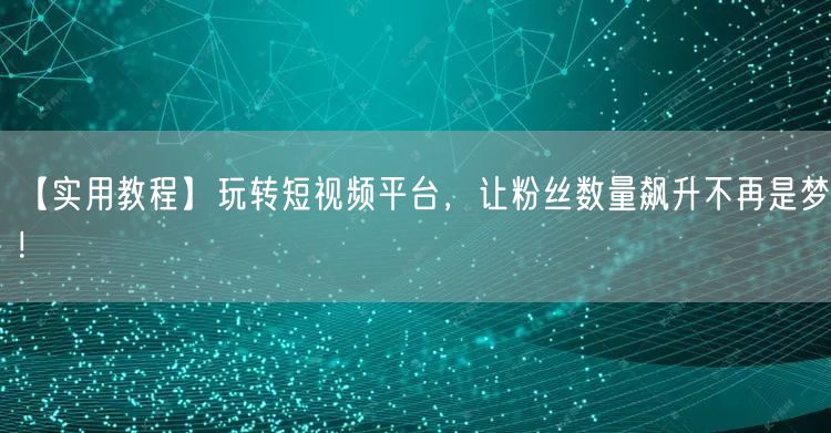 摘要:本文将通过简明实用的教程方式,向您介绍如何玩转短视频平台,让您在短视频平台上粉丝数量飙升不再是梦想。掌握这些方法,轻松打造个人品牌,成为短视频领域的佼佼者。