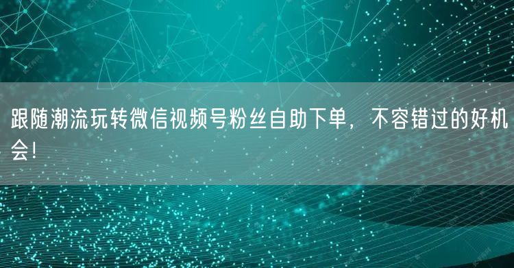 微信视频号粉丝自助下单是一个充满机遇和挑战的新领域。只要我们紧跟潮流,善于抓住机遇,就一定能在微信视频号平台上取得成功!