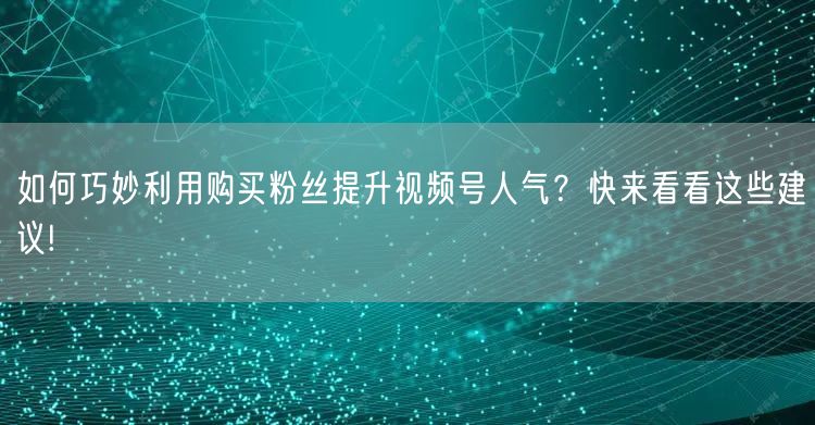 购买粉丝是一种快速提升视频号人气的方法。通过购买粉丝,可以快速增加关注者数量,提高视频曝光率。然而,仅仅依靠购买粉丝并不能长久地提升人气,还需要结合其他策略。