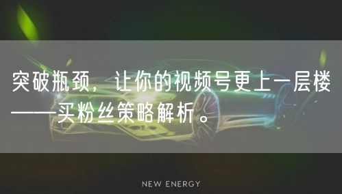 随着社交媒体的发展,视频号作为新兴的媒体平台,受到了广大内容创作者的热烈欢迎。然而,随着用户数量的增长和内容的丰富,视频号的竞争也日益激烈。如何在众多视频号中脱颖而出,吸引更多粉丝关注,成为每个创作者面临的问题。本文将为你解析如何通过买粉丝策略,突破瓶颈,让你的视频号更上一层楼。