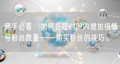 购买粉丝是新手快速增加视频号粉丝数量的有效手段之一。但需要注意的是,购买粉丝只是辅助手段,优质内容和良好的互动关系才是留住粉丝的关键。通过运用本文介绍的购买粉丝技巧和管理方法,相信新手们能够在短时间内实现视频号的快速增长。