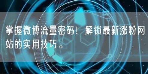 通过本文的学习和实践,您将能够更好地掌握微博流量密码,解锁最新涨粉网站的实用技巧,实现微博高效涨粉,提升个人品牌或企业的影响力。